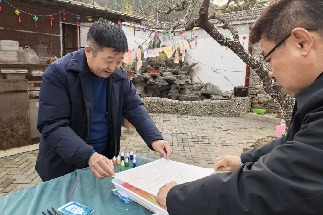 品嘗完甜蜜的糖葫蘆,大家又紛紛投入到水拓畫絲巾活動(dòng)中。創(chuàng)作、水拓、固色再到晾干,隨著一幅幅色彩斑斕的畫作拓印于絲巾之上,大家由衷地發(fā)出歡呼和贊嘆,欣賞著這份獨(dú)一無二的美,感受非物質(zhì)文化遺產(chǎn)水拓畫的獨(dú)特魅力。水拓絲巾的制作不僅考驗(yàn)著大家的耐心與細(xì)心,更是一次對美的追求與探索。